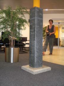 Stele aus Diabas mit Granitsockel und Künstlerin