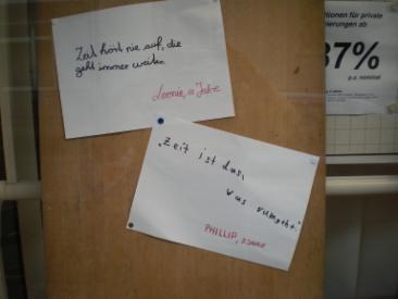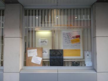 Installation: "...noch später" von 2009, wurde nach starken Irritationen des Bankpublikums ausgetauscht durch das "Frühwerk":