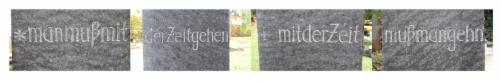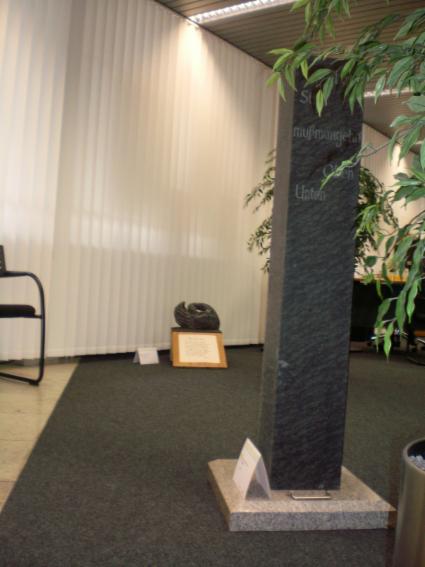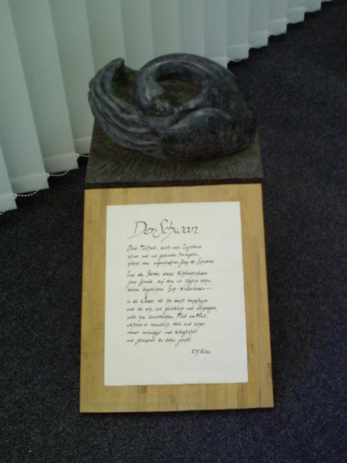 Der Schwan, Diabas, Holz und Papier, 1995 & 2009 (Der Text findet sich lesbar weiter unten)