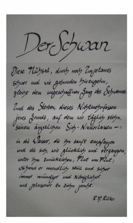 Rilkes Gedicht "Der Schwan" handschriftlich auf Pergament
