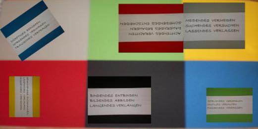Diese Wortpaare waren Bestandteil der Installation "Fragiles Gleichgewicht" und steckten in verschiedenen "Fächern" der Stele.